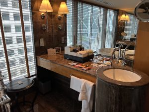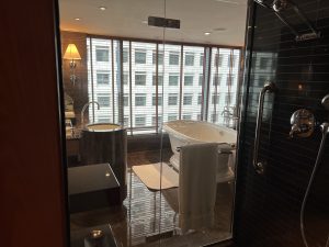 浴室好奇怪,有個中島分隔開浴缸同企缸廁所。