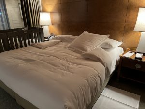 King size bed 其實係twin bed 合併埋一齊,中間嘅位置有啲銀pat pat。著燈又影。