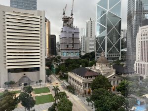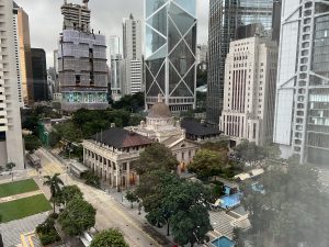 正面係hong kong club,右邊可見中銀。