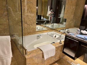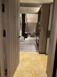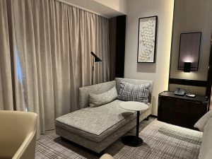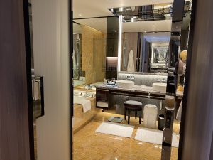 張床比想像中細,應該唔係king size?可能唔想間房太逼夾,有錢人想要嘅空間感。