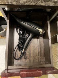 用品喺櫃桶入邊。風筒夠力,但會吹到炸毛。