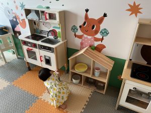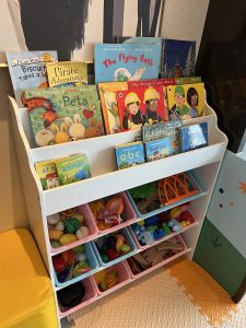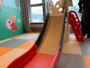 Playroom就直頭係成個playgroup free play area咁,或者party room咁,有廚房、廚具、書架(magazine stand),有sir滑梯,有醫生護士組合箱,仲有電視播放minions, 可惜有啲跳格。QQ明明好眼訓,但玩左個半鐘。