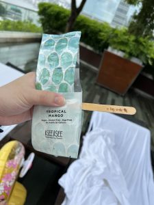 每到整點會派小食,食過柚子雪糕、開心果雪糕,第二日芒果雪條、士多啤梨雪條。食到個人凍曬,仲要落雨落水,真玩命。派緊野食期間,基乎所有人都會上水,如果想影無人泳池,就一流,可惜我帶住QQ,無時間影多啲相。