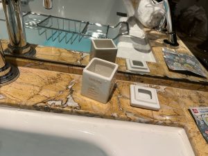 左邊係浴缸同企缸。order浴鹽浴巾,浴鹽係成樽鹽咁比。
