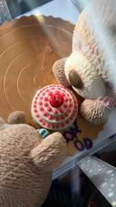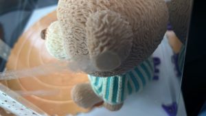 以往可能啲熊仔個pat pat係溶咗少少可以黐住個底,然後再雪硬佢就唔會走熊。但買家驚我哋要半個鐘頭車程,驚隻熊仔會溶向半路,所以較低左冰格嘅溫度,雪得勁硬,好似冰磚咁。