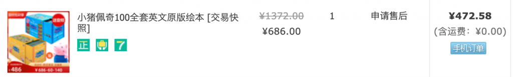 另外一間書店(优学宝贝图书专营店)又可以買到peppa pig合集,就算隔晚睇一本,因為QQ好鍾意重複,睇到兩歲仲未睇100本XD。
